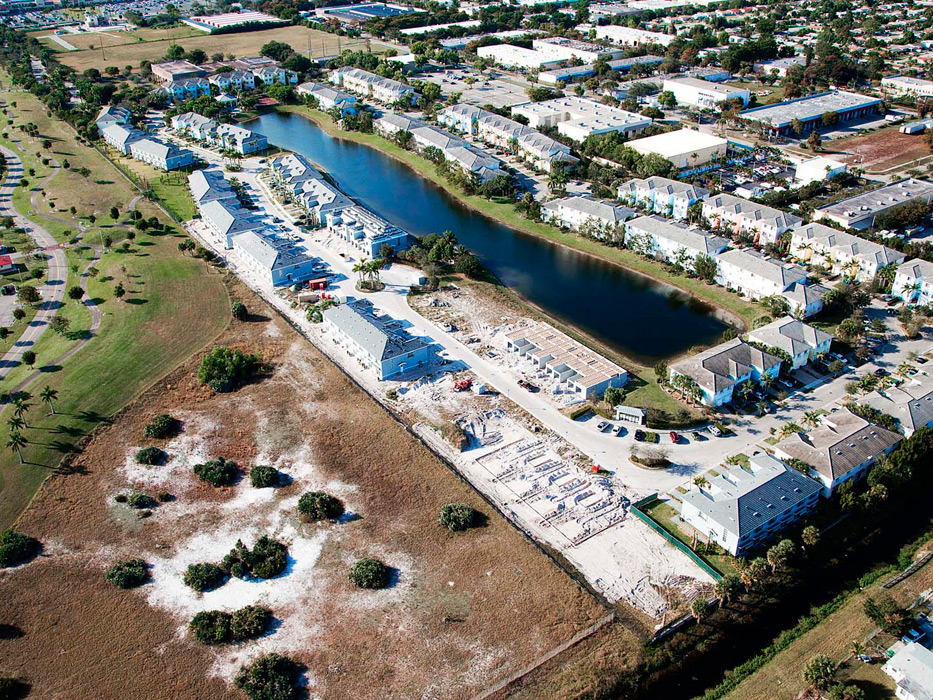 15- 2 story buildings of reinforced masonry and pre fabricated wood trusses of 116 townhomes. Located in Lauderhill, Florida. Project value $10.5 million.