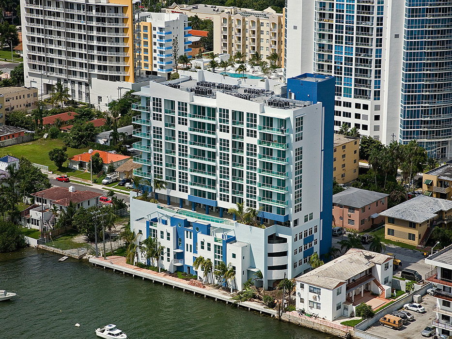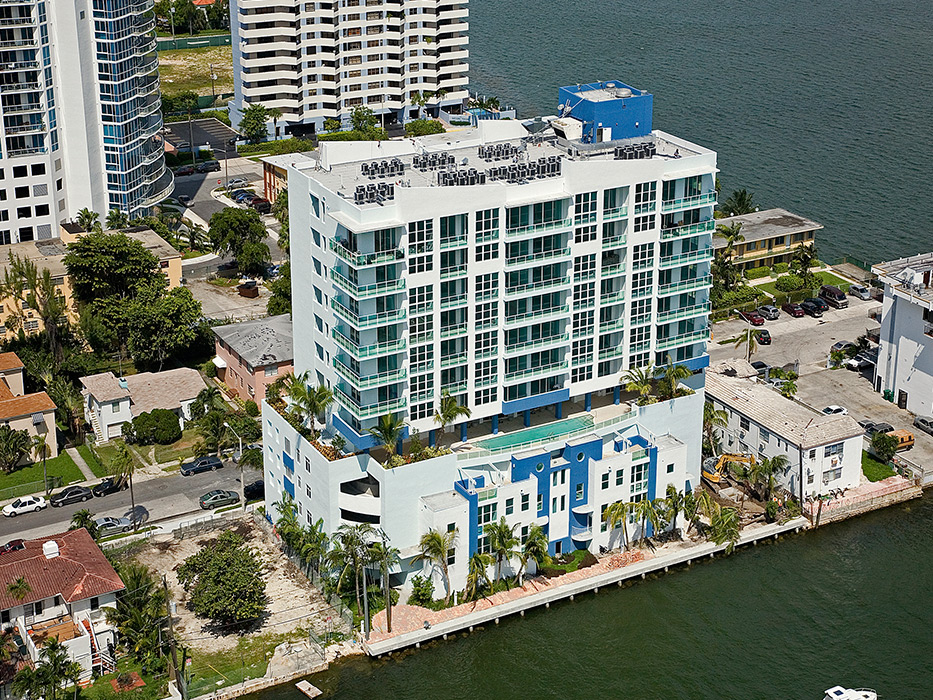 A 12 story post tension reinforced masonry of 59 multi family units, 2 story townhouses and parking gararge . Located in Miami, Florida completed in 2006. Project value $ 10.7 million.
