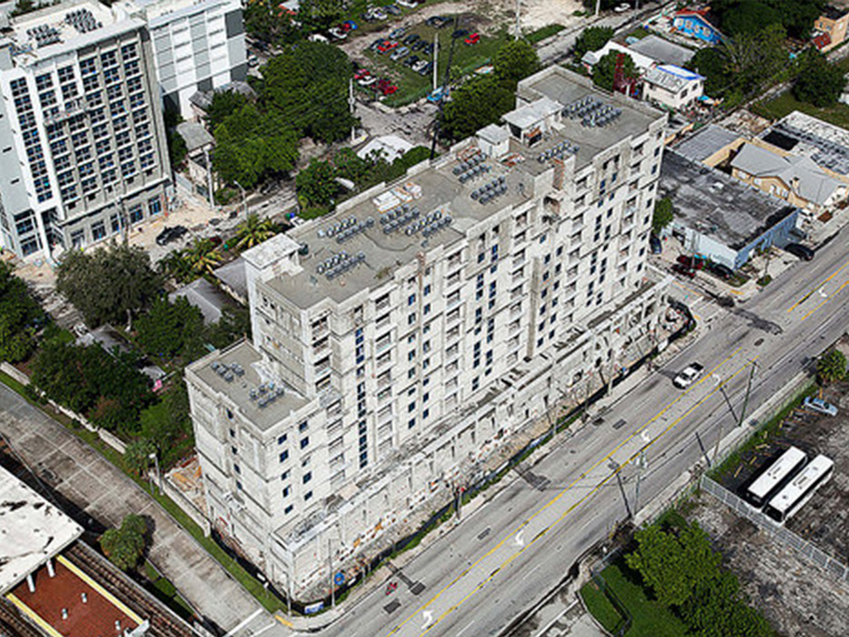 A DMBC and ANF joint venture. A 12 story flat plate and reinforced masonry construction of 94 multi family units. Pedestal parking and site improvements. Located in Miami, Florida. Project value $ 15.9 million.